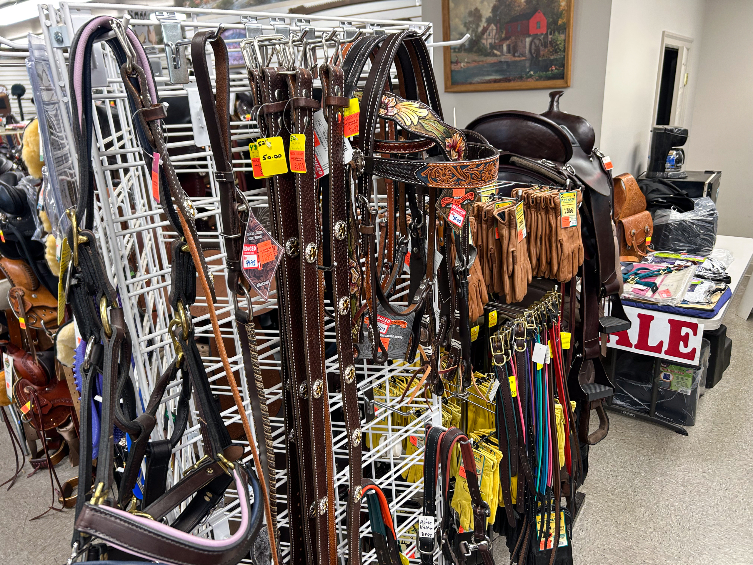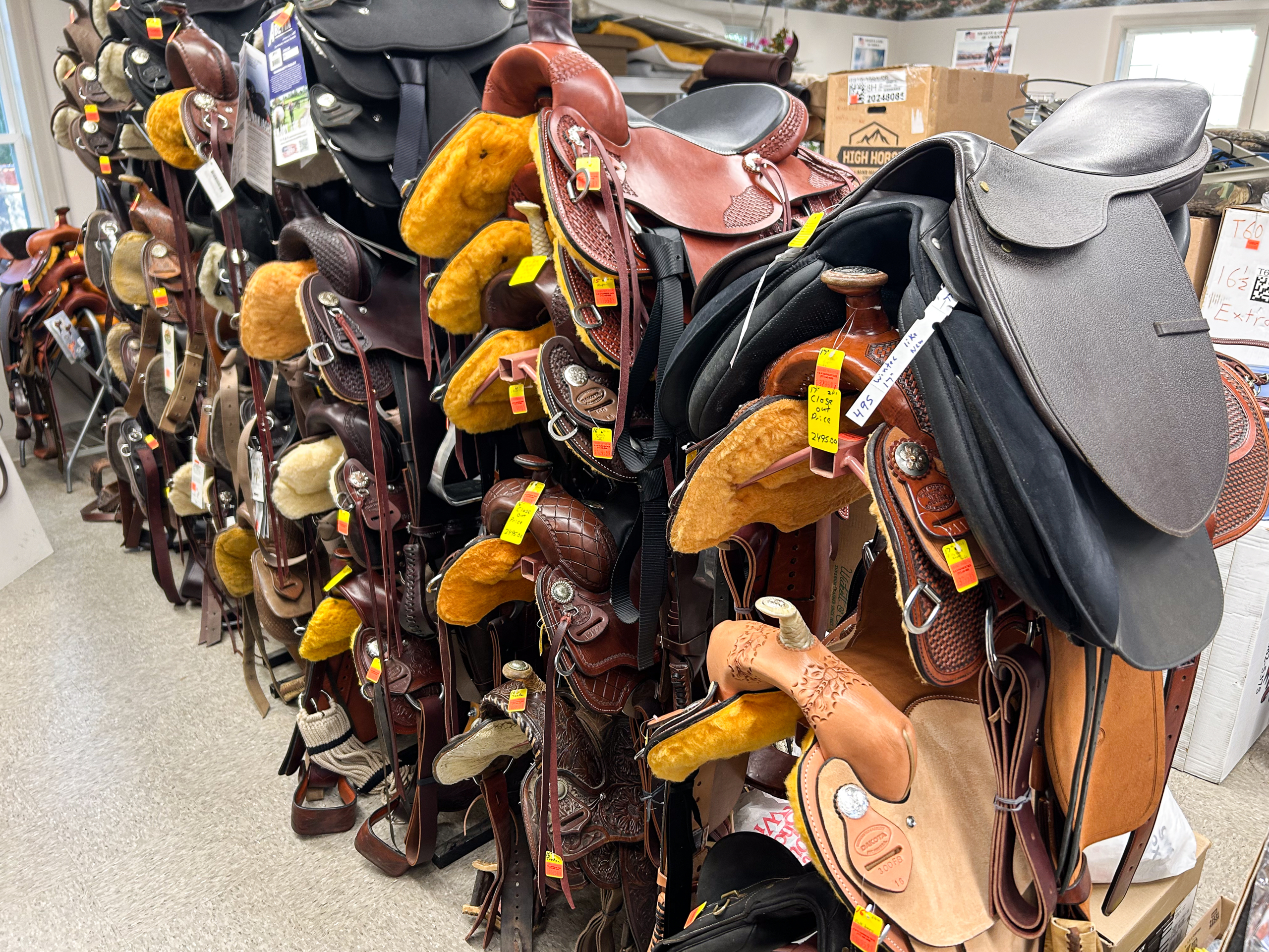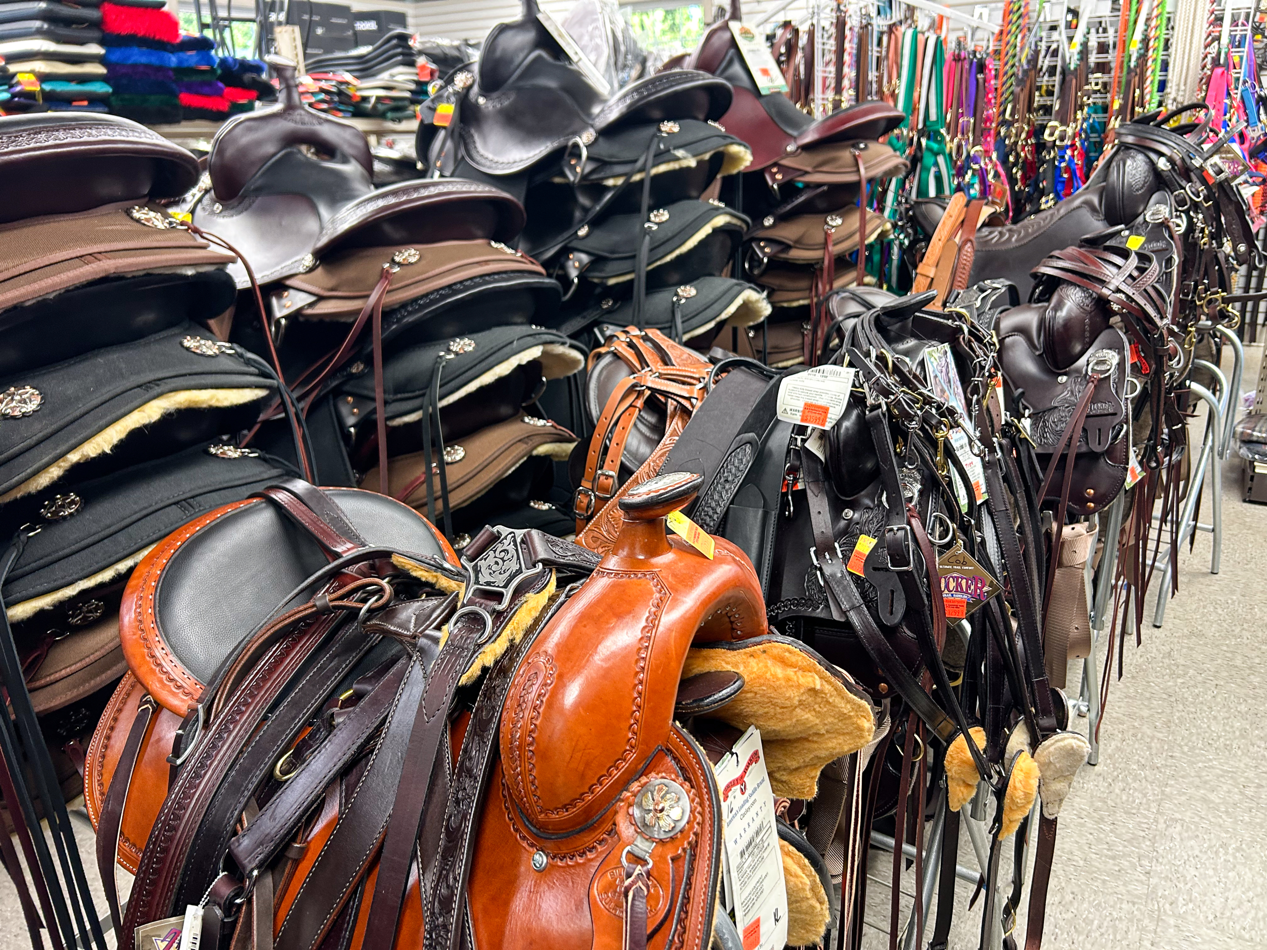 Very large selection of saddles and tack.