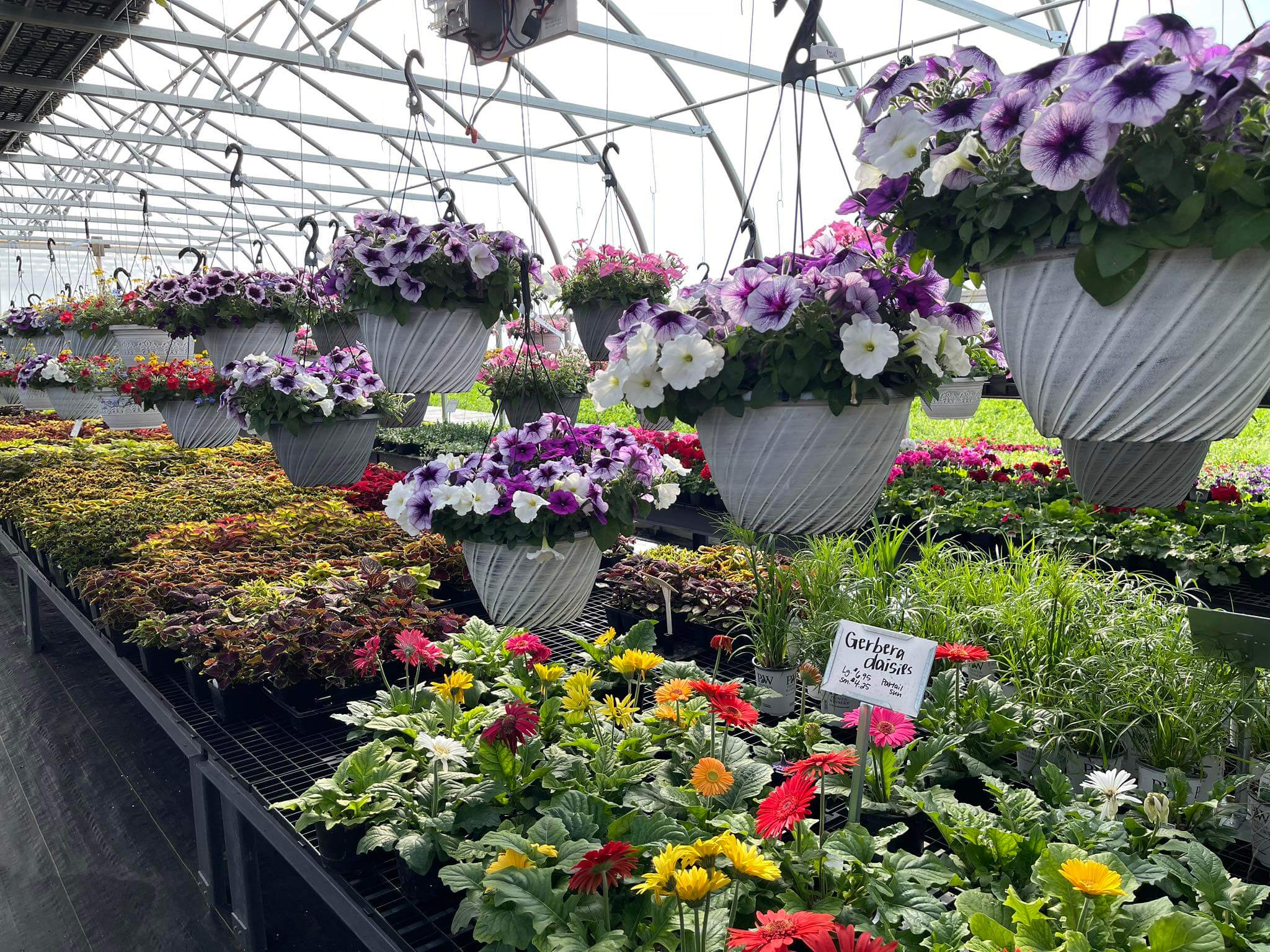 We specialize in Annuals, Pansies, Hanging Baskets, Ferns, Houseplants and Succulents. We also offer handmade Hard Pretzels.